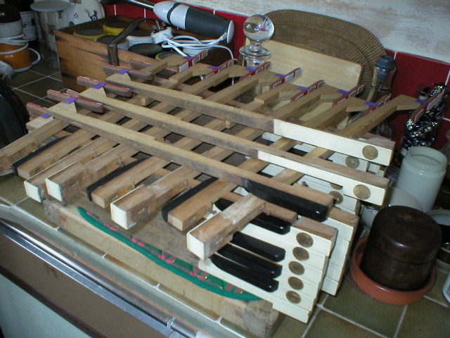 And finally, the keys cleaned and re-installed in the key frame. Not bad for an afternoon's work. Now I can get the use of my kitchen back...