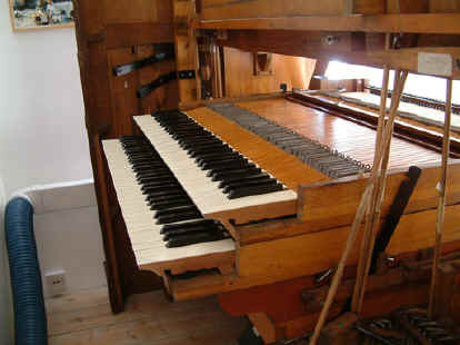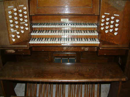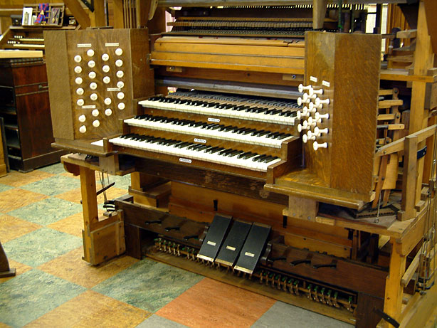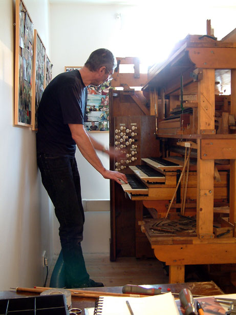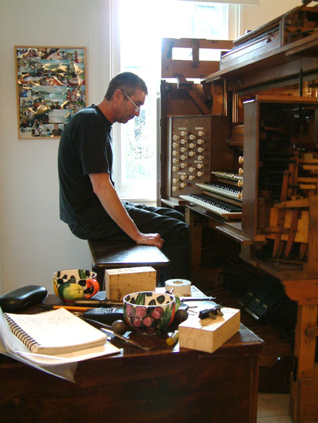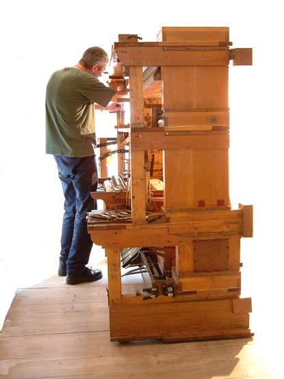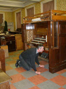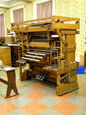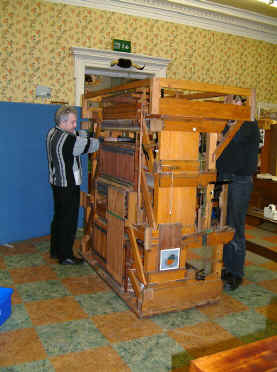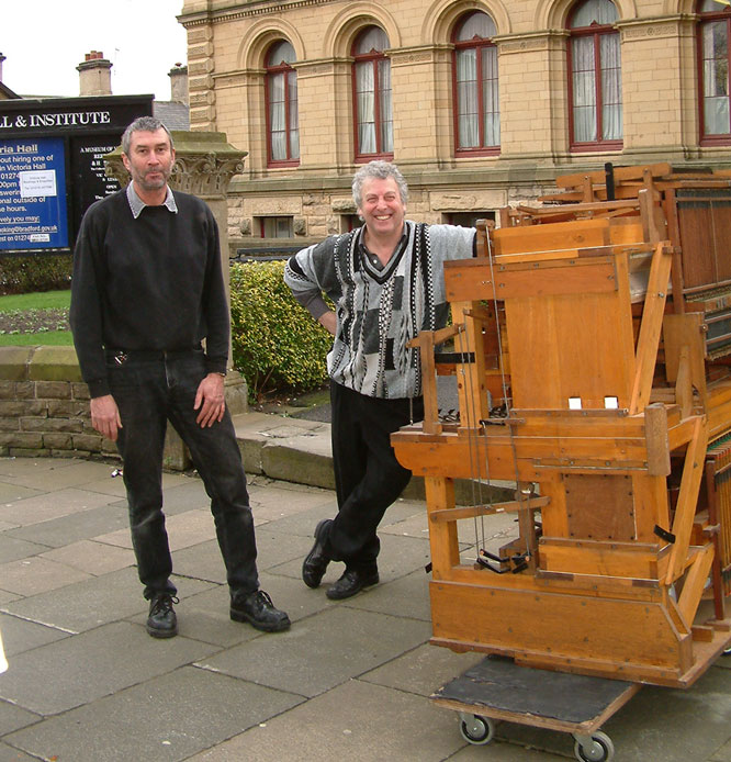 Bruce Dracott (left) with Phil Fluke removing the organ from the Saltaire Institute.