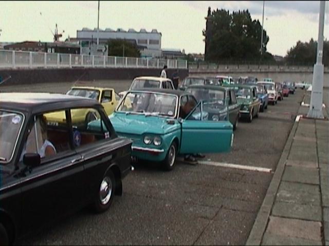 assorted cars, mostly, Imps, left Ocean Field and proceeded