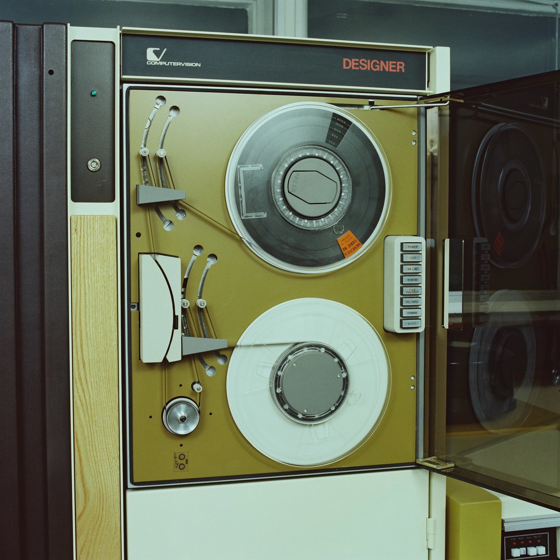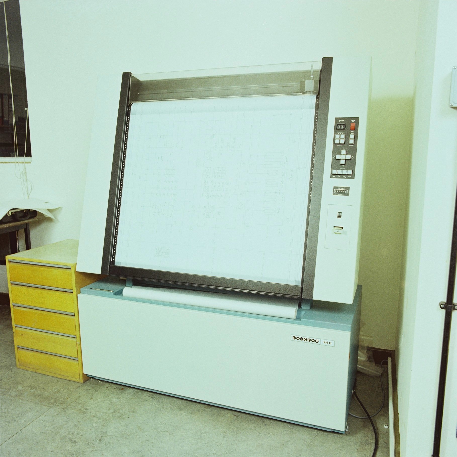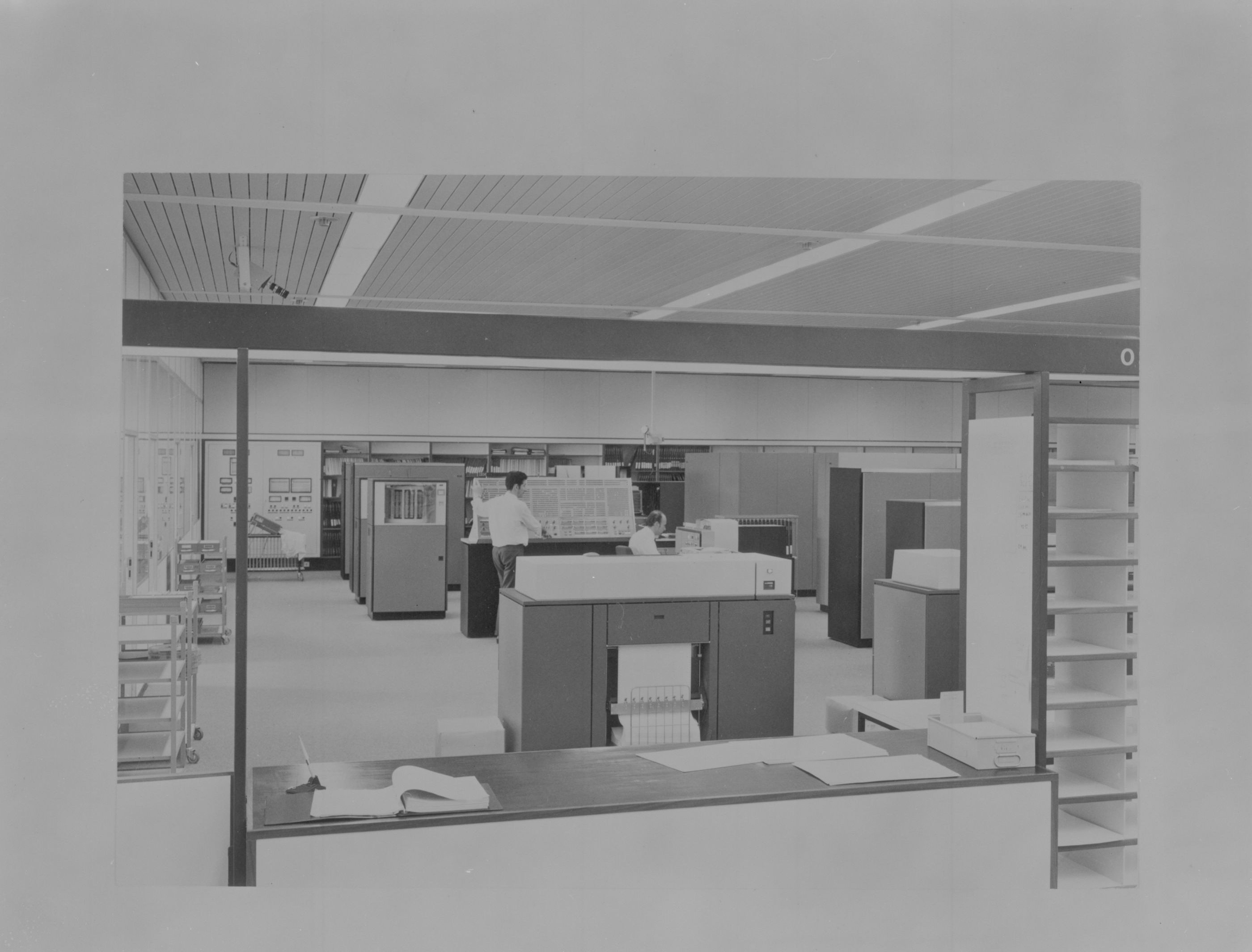 - IBM 370/165 console date? Also seen are microfiche viewers for reading OS source code.