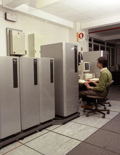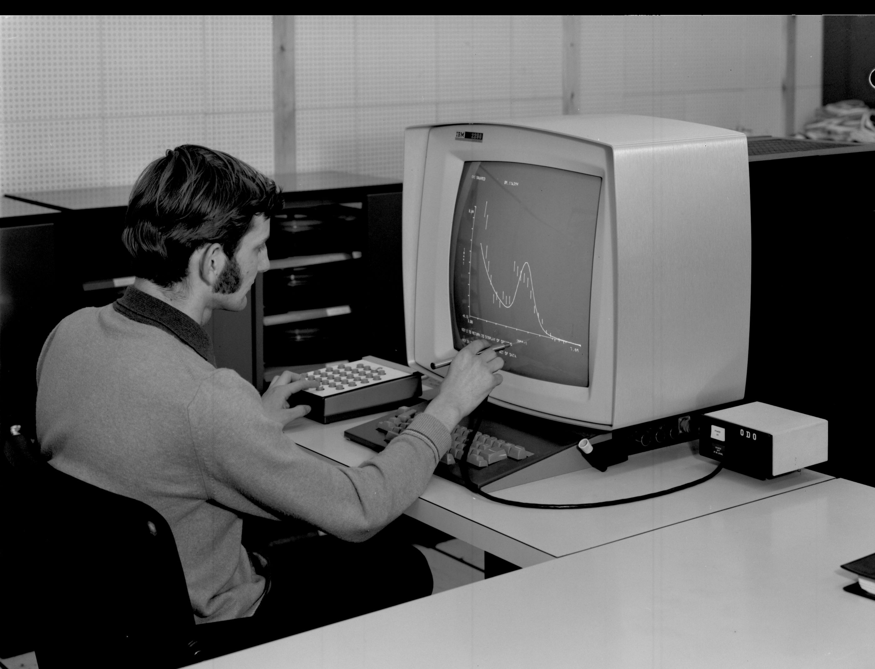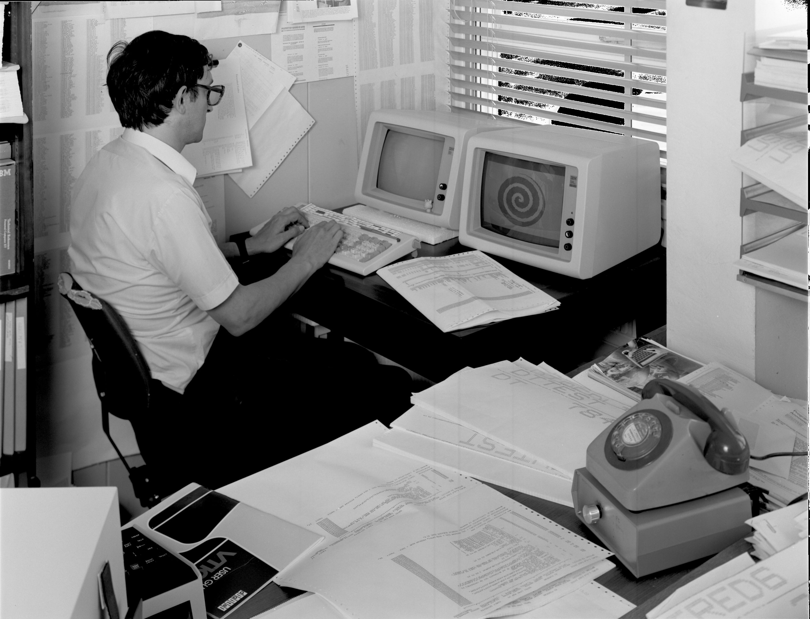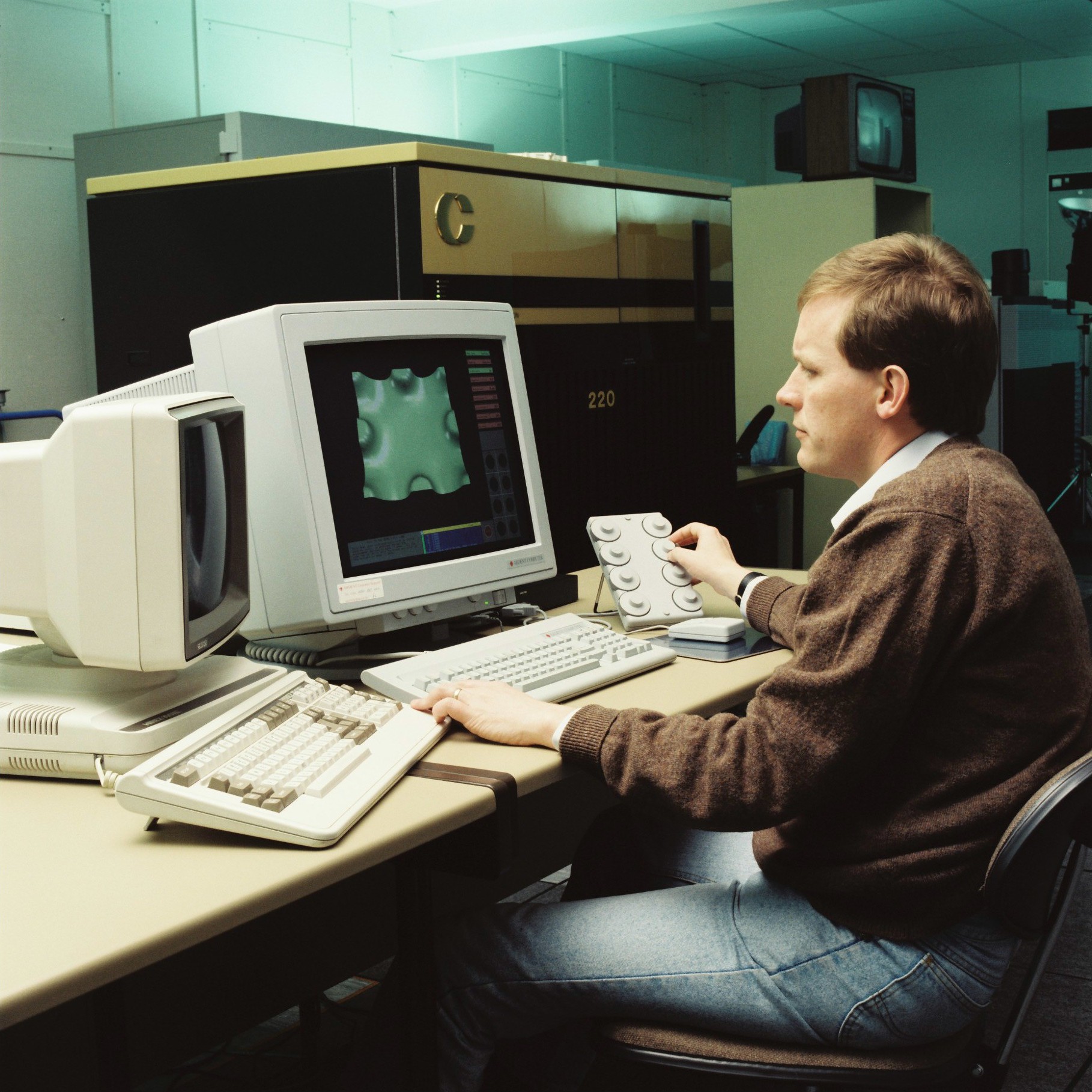 - Richard Blake using Stardent graphics terminal with Convex in background 1990