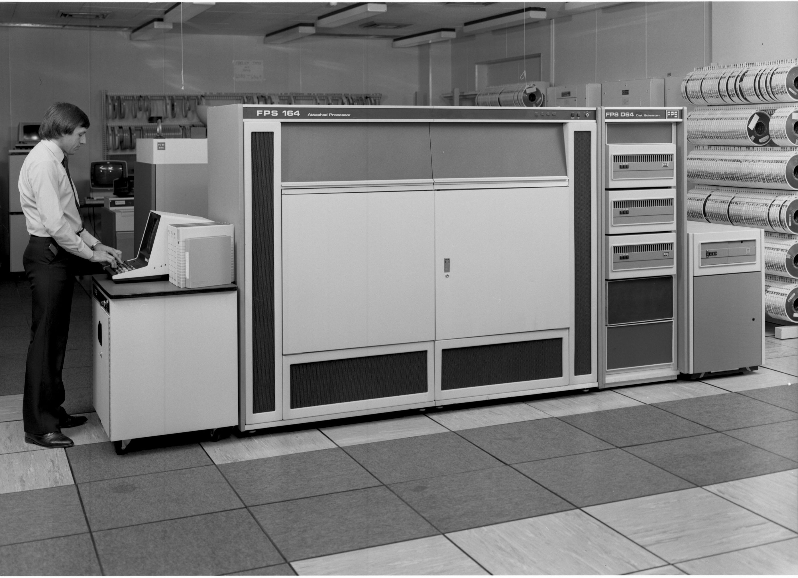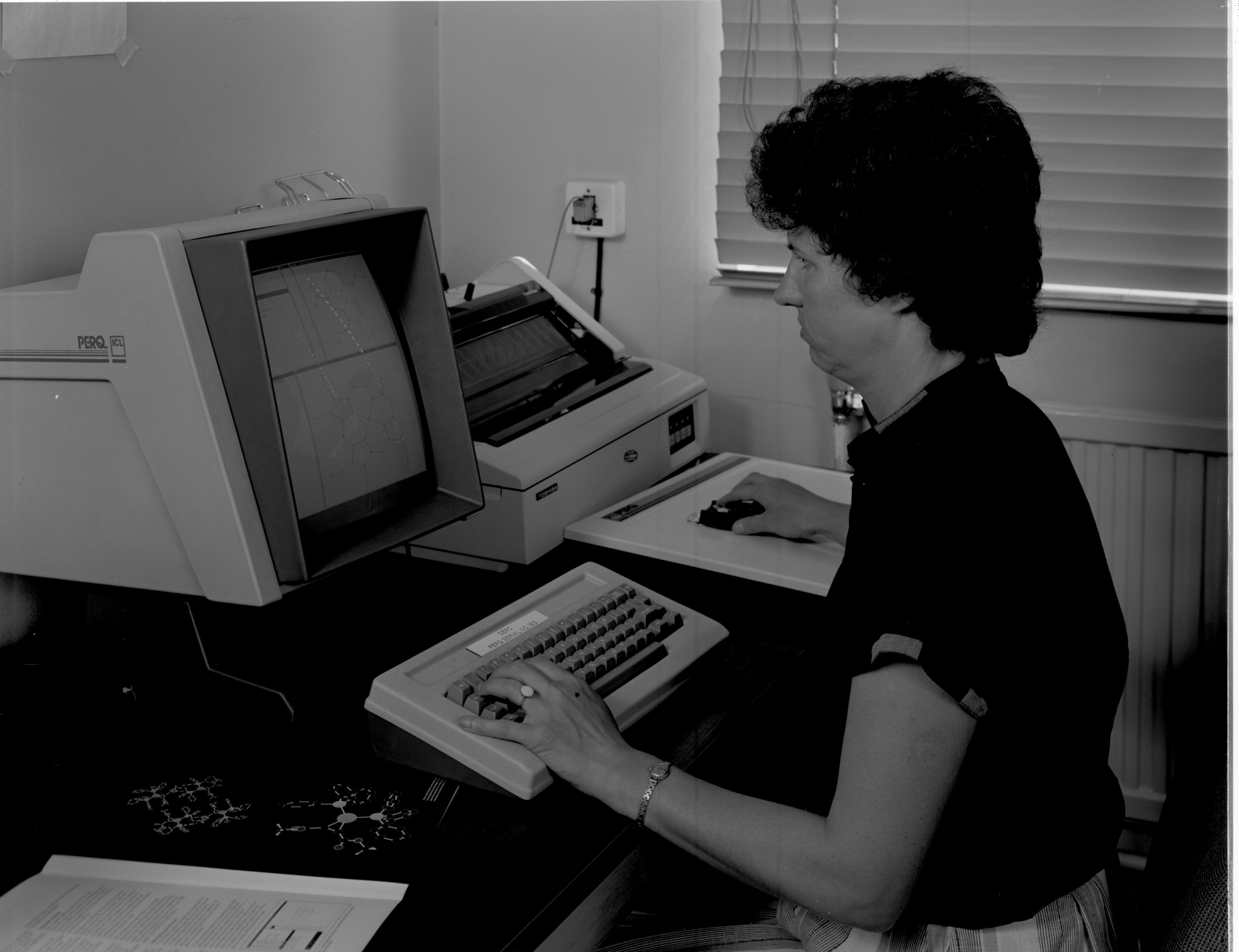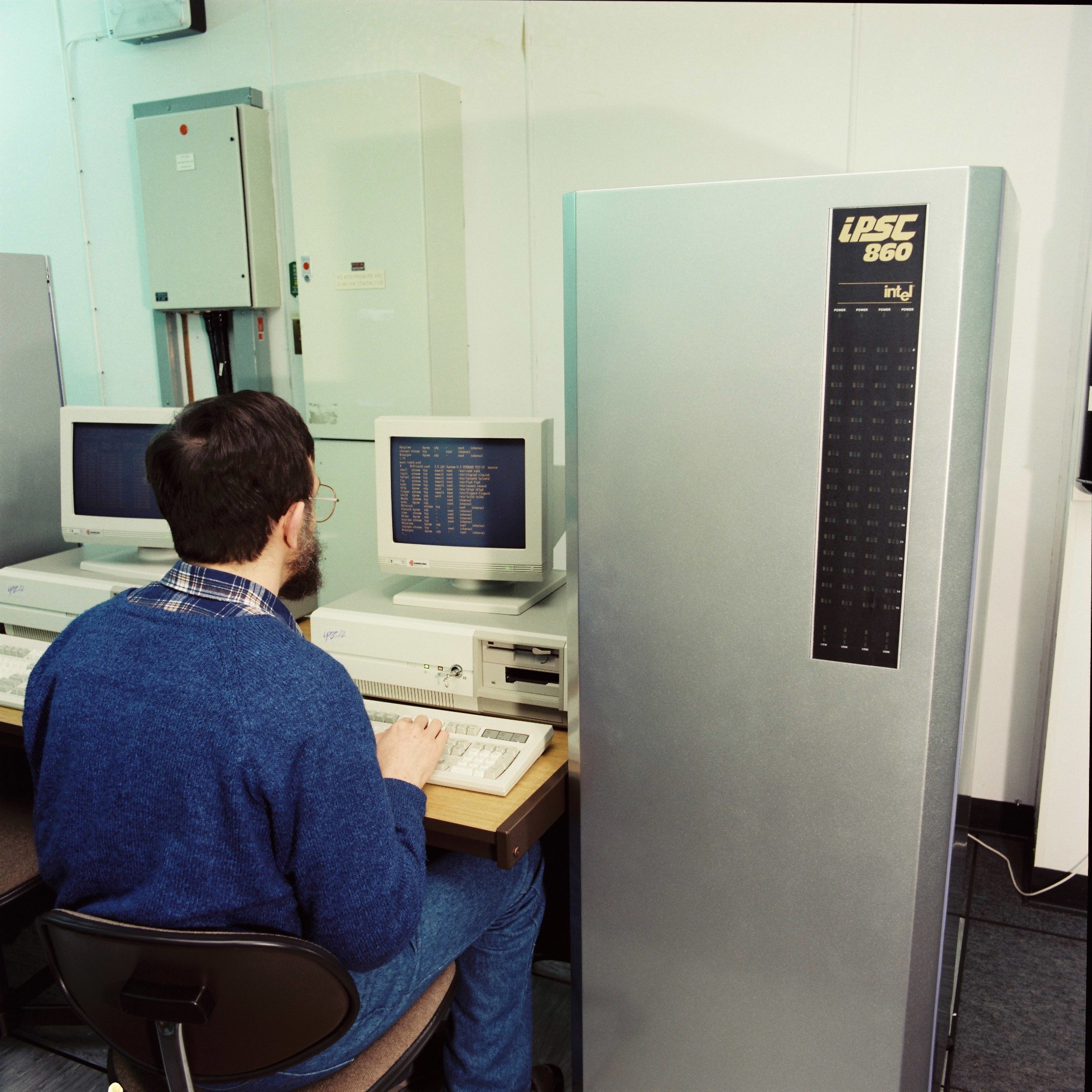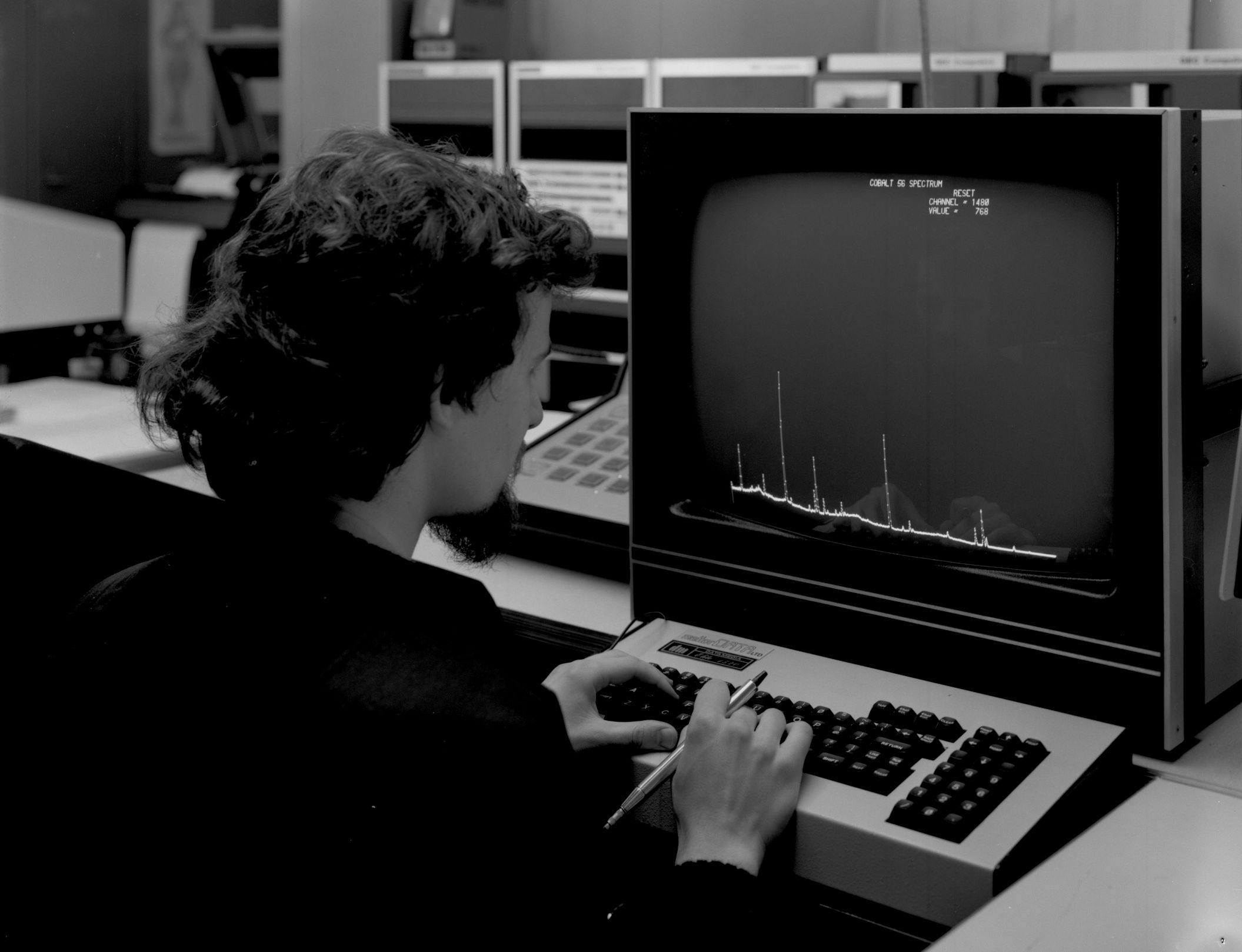 - Richard Blake using Stardent graphics terminal with Convex in background 1990
