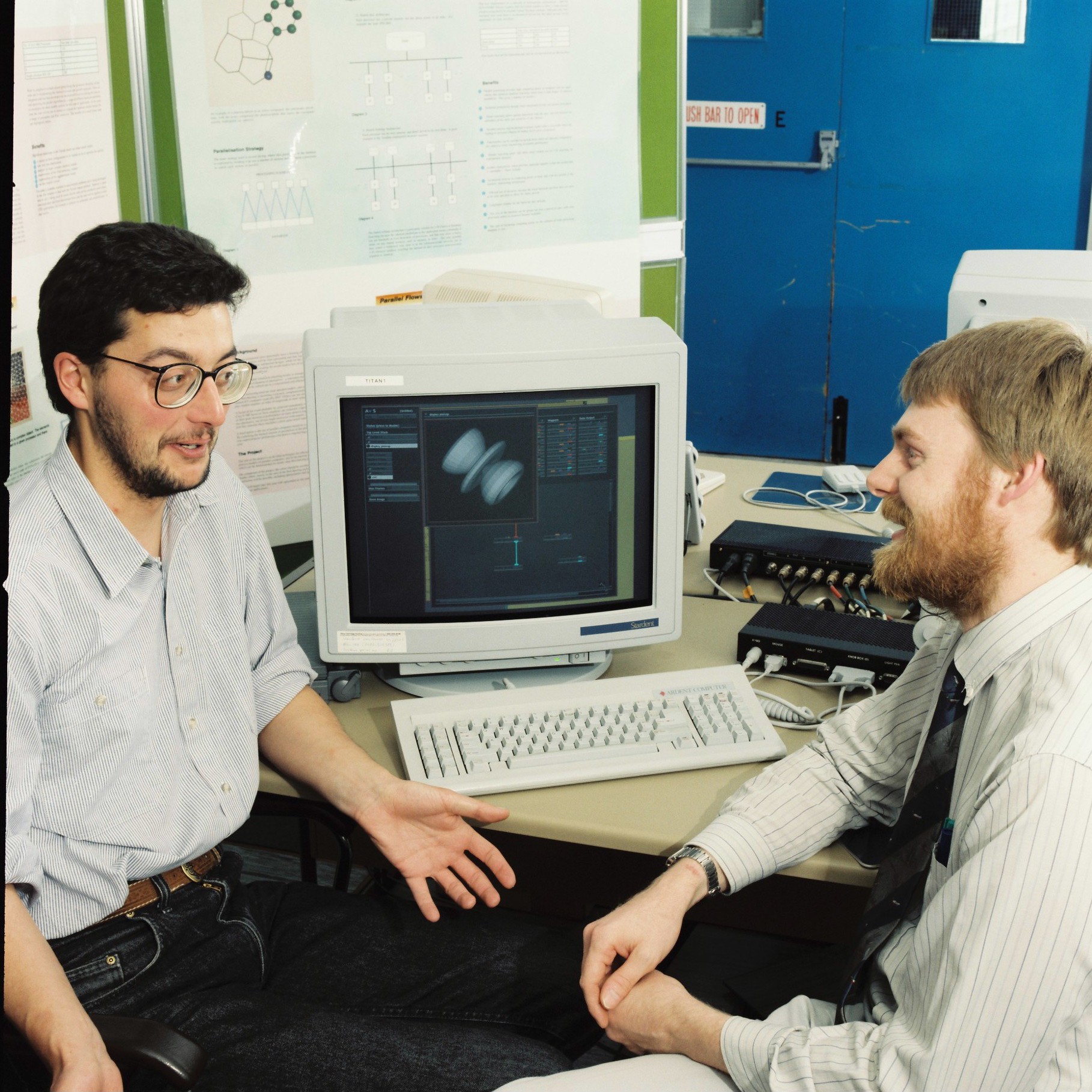 - Paul Sherwood with Silicon Graphics workstation 1990